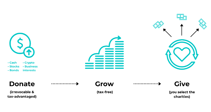 With donor-advised funds, you aren’t limited to donating just cash. Acceptable donations range from stocks and bonds to bitcoin and private company stock.