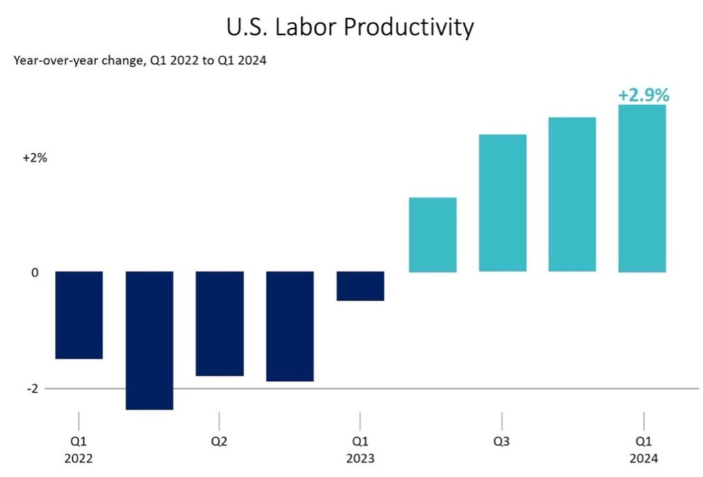 Surging productivity over the last year has helped in the battle against inflation. If it continues at this level – even if further quarterly increases are minimal – it may be enough for the U.S. economy to continue to see strong growth and falling inflation.